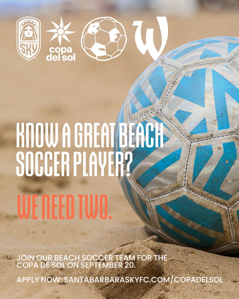 We’re looking for two players to round out our team for the 5×5 Copa del Sol beach soccer tournament in Santa Barbara on September 20th.